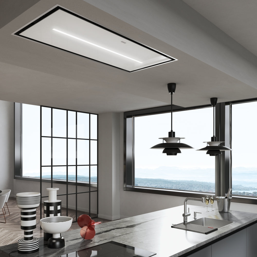 Mythos Ceiling Air Hub FCMY 120 C WHG A AH, White, Ceiling Hood, 120cm wide. Great energy efficiency A+ rating, powerful extraction modes - 3 speeds + 2 intensive, Remote control, 1 x LED Bar. Mythos Air Hub removes more than just the lingering odour of food. This integrated system combines a powerful hood with a state-of- the-art air sanitization system. The dedicated UV-C lights abate up to 99.99% of viruses and bacteria from your kitchen, providing you with purer air. Use any of the three modes: manual, intensive and night, to purify your air at a time that suits you best. It may sound like magic, but it’s just technology.