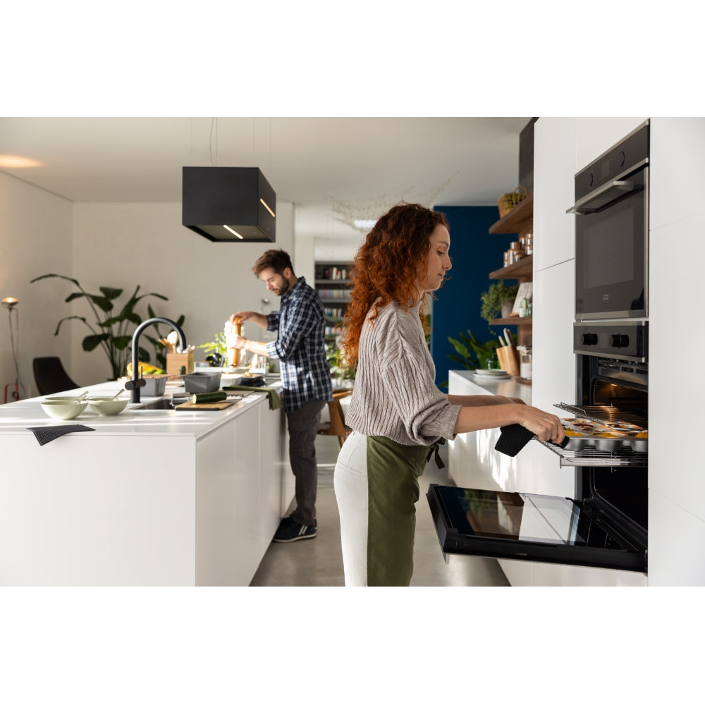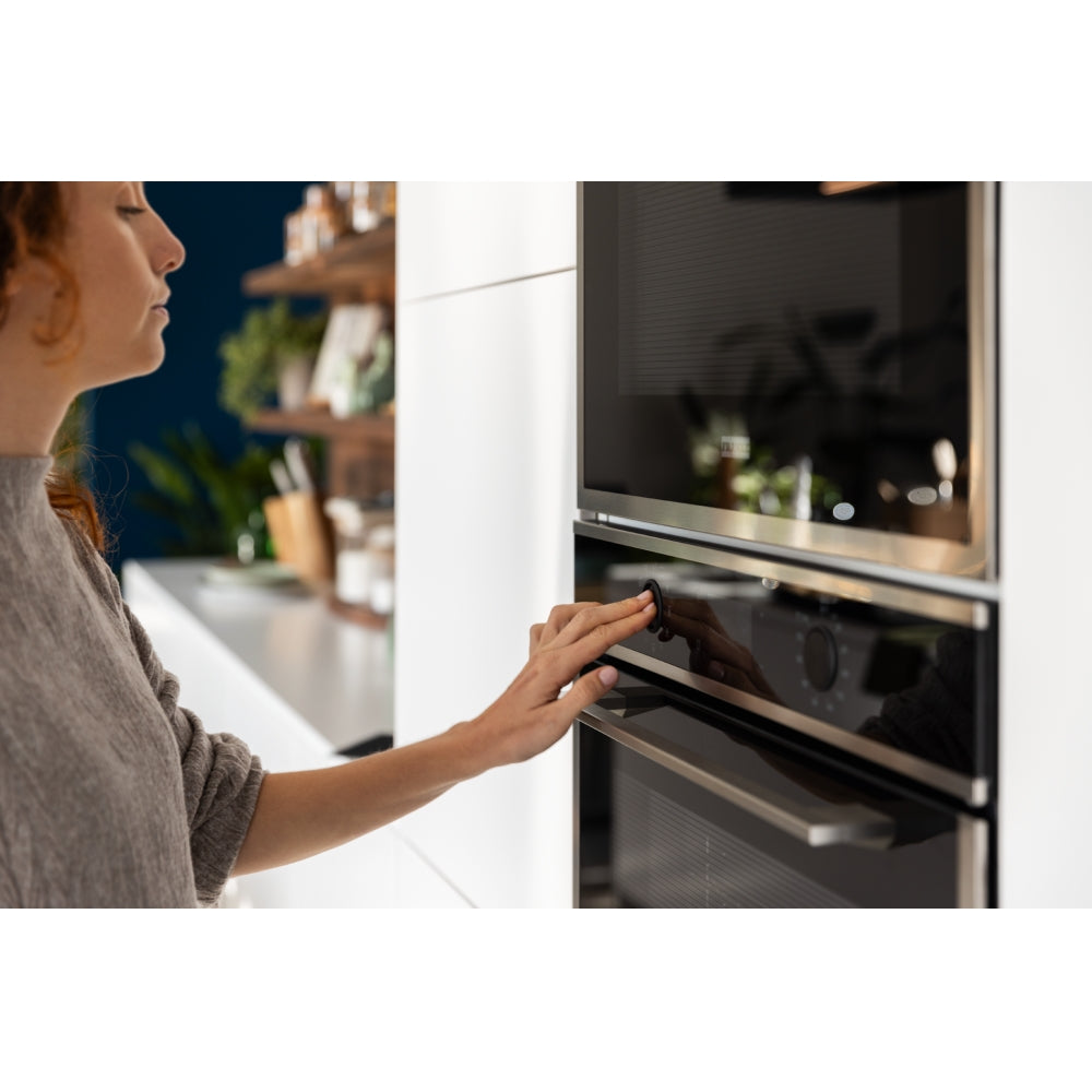 Maris Pyrolytic Oven FMA 97 P XS, Black with Stainless Steel trim. Features include: A+ Energy rating, 71 Litre capacity, 11 functions, White LED Display, Electronic controls, Push-pull knobs, Soft close door and 2 wire shelves (1 level partial), 1 baking tray, 1 deep tray.