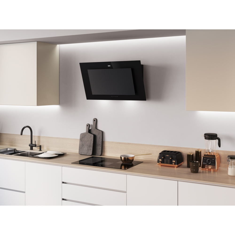 Maris Matt Pro FMA PRO 907 BK/BK MATT FRK, Black, Matt finish, Wall Hood, 90cm wide. Dot matrix display, Capacitative Touch Controls, 3 speeds + Intensive, LED lights x2. Includes Charcoal Filter. The functional and durable Maris range is available in both 80 or 90cm sizes, features 2 LED dimmerable spotlight to brighten your kitchen and the charcoal filters come as standard. Both are A+ energy-rated and are easy on the ears too, producing only 56 DB at maximum speed.exclusive enamelled Matt Black panel of the Maris Matt Pro.