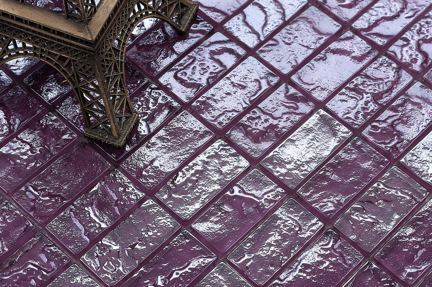 Lilac Textured Lava Glass Brick Mosaic Tiles (MT0119)