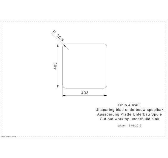 Article name OHIO 40X40 L Mounting method Integrated, Semi-Integrated, Undermount Reversible No Number of bowls 1 Inner radius (mm) 25 Outer radius (mm) 45 Total size (mm) 440x440x180 Main bowl size (mm) 403x403x180 Strainer (Search name) R1149 Shape Square Material Stainless Steel (304) Material thickness (mm) 0,9 Depth (mm) 180 Cabinet size (mm) 450