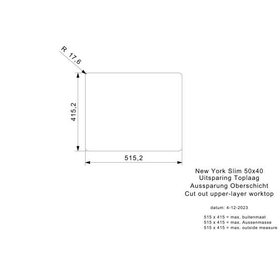 Reginox New York NY 50x40 Slim Inset/Undermount 1 Bowl SS Kitchen Sink