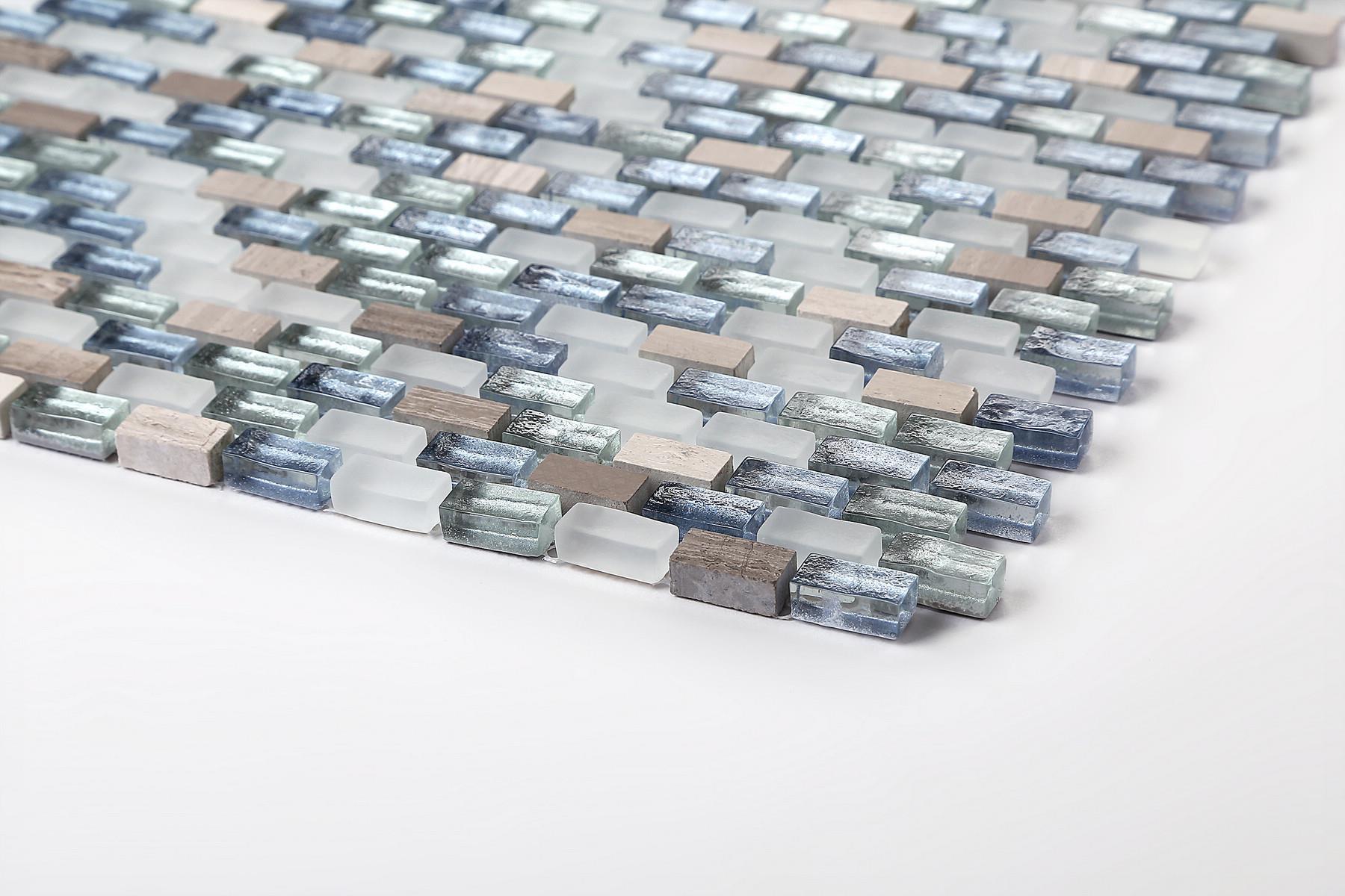 White, Blue and Silver Glass & Natural Stone Brick Shape Mosaic Tile sheet (MT0125)