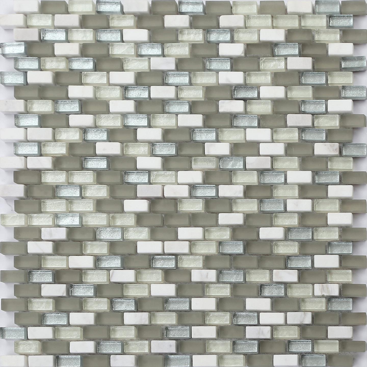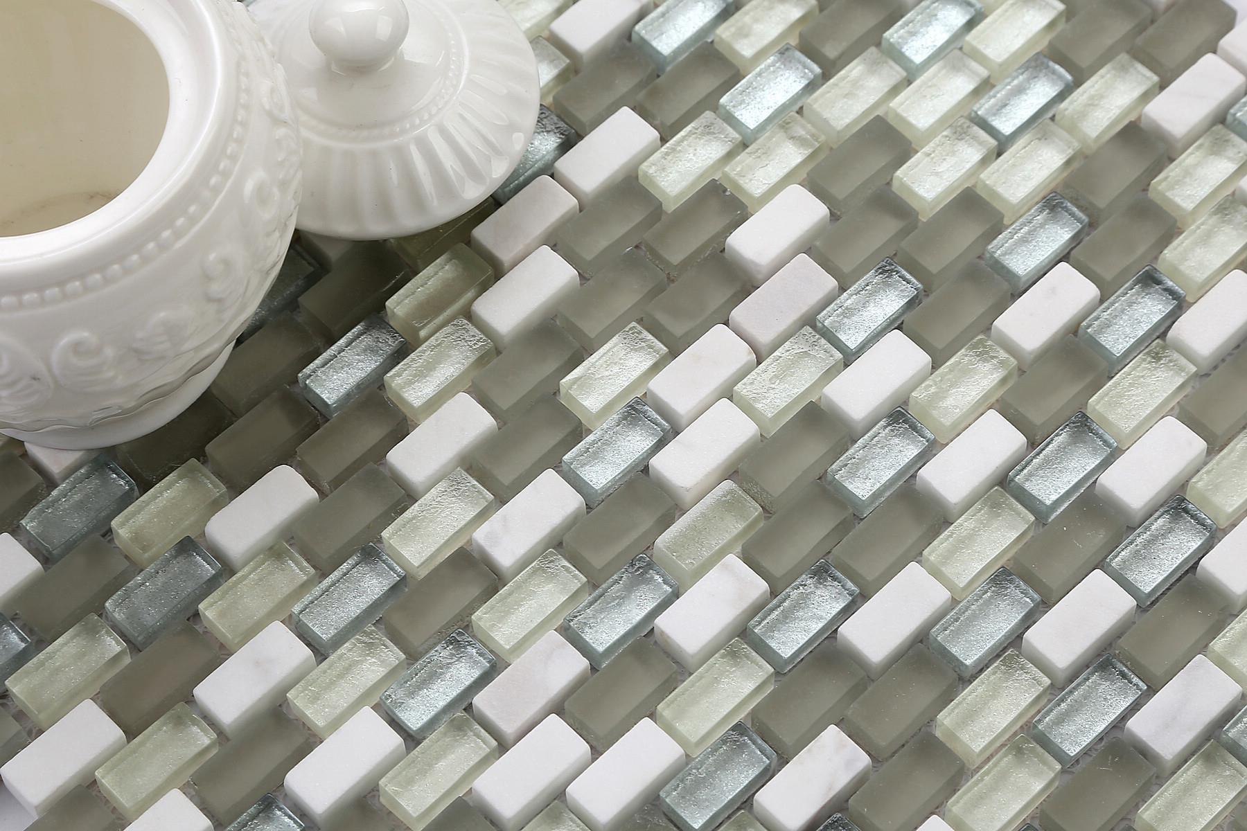 White, Grey and Silver Glass & Stone Brick Shape Mosaic Tiles (MT0124)